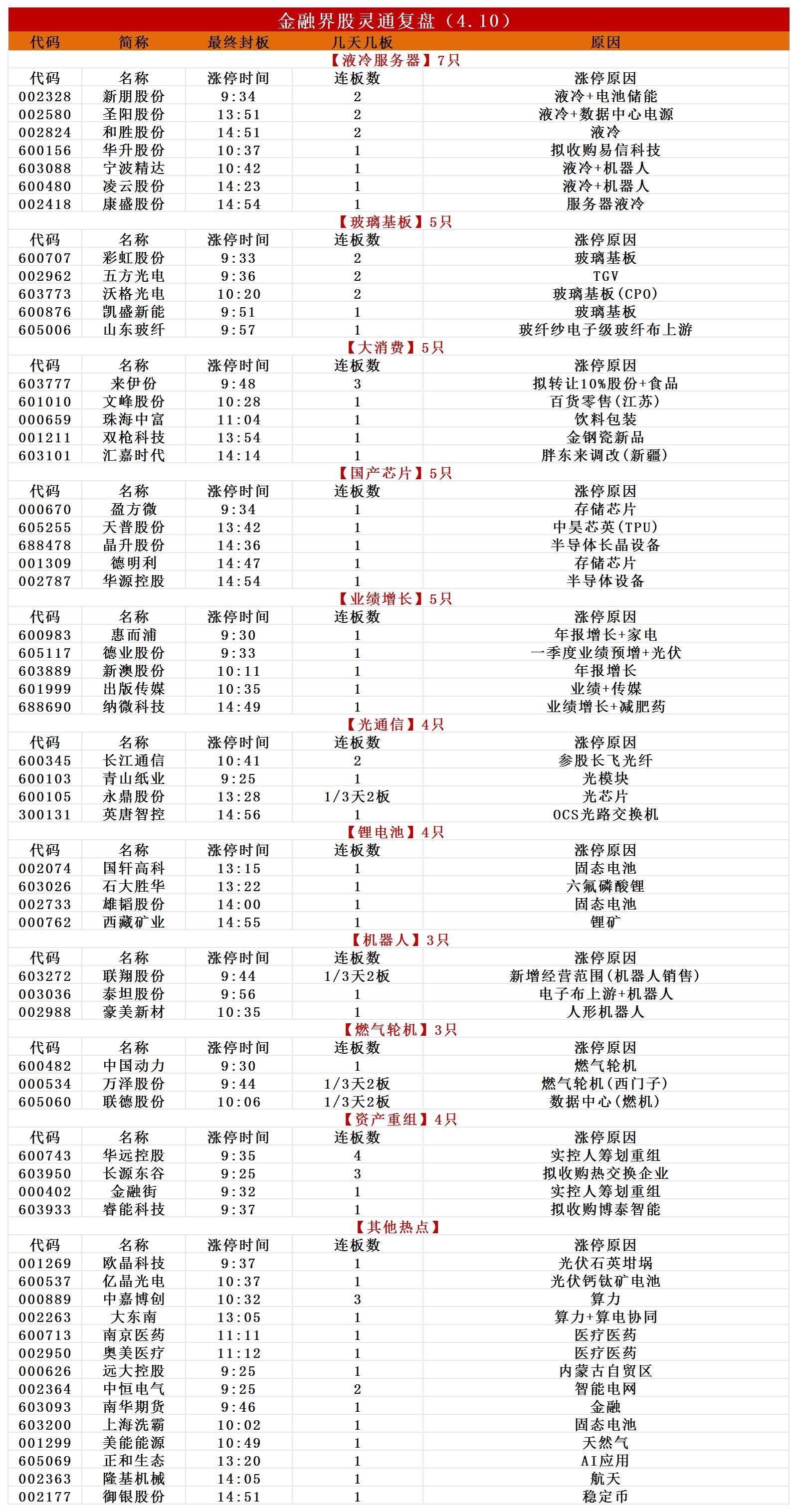4月10日,行情完全由创业板大盘权重股主导,中际旭创、新易盛均涨超6%创历史新高,宁德时代一度涨超7%。但短线情绪不高配资门户网站,汇源通信、法尔胜、舒华体育、新能泰山等一批高位人气股跌停。截至收盘,沪指涨0.51%,深成指涨2.24%,创业板指涨3.78%。板块方面,行情紧紧围绕行业景气度展开,算力产业链与储能锂电产业链齐飞。储能锂电产业链方向,一季度业绩大增的德业股份开盘秒板,中恒电气、新朋股份、圣阳股份、和胜股份晋级2连板,石大胜华、西藏矿业、国轩高科涨停;算力产业链方向,光模块分支东山精密盘中一度涨停走出3连板,玻璃基板概念获短线资金追捧,彩虹股份、五方光电、沃格光电2连板,存储芯片获资金回流,德明利涨停,市值突破千亿。